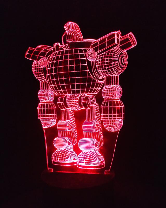 3d-светильник робот, 3д-ночник, несколько подсветок (на батарейке)