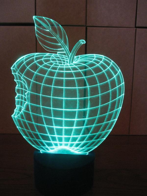 3d-светильник яблоко, 3д-ночник, несколько подсветок (на пульте)