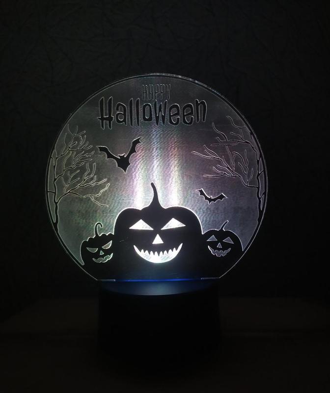 3d-светильник Хэллоуин Хеллоуин Тыква, 3д-ночник, несколько подсветок (на bluetooth), подарок декор 3D-светильник - оптическая иллюзия, когда свет заставляет плоскую пластину с нанесенным рисунком, казаться объемной. Свет, создающий настроение! Пластина с рисунком съемная, что позволяет заменять рисунки по настроению одним легким движением. Странапроизводитель Украина Гарантия 6 месяцевнаэлектронику Взаимозаменяемостьпластин с рисунком Да Размерысветильника Высота - 20 см Ширина - 17 см Толщина акриловой пластины с рисунком 4 мм Количествоподсветок 16 млн. цветов/оттенков Питание - 1 батарейка крона 9V (НЕТ в комплекте) - сеть 220В (сетевой шнур в комплекте) Включение, управление, выключение Смартфон (Bluetooth) Типлампы Светодиодная (LED) Режимавтосменыцветов Регулировка яркости свечения Более 10 режимов свечения Функция «Световой будильник» Мерцание под музыку Мерцание при встряхивании смартфоном Мерцание под окружающие звуки Регулировка скорости мерцания Комплектация База (корпус), пластина с рисунком, сетевой шнур, инструкция Причины для покупки 3D-светильника * 3Д-ночник создаст идеальное мягкое освещение в комнате, гостиной или спальне. * 3D-светильник позволит существенно сэкономить электроэнергию, когда смотришь телевизор или отдыхаешь. * Ночник 3d создаст романтическую атмосферу в спальне или гостиной, заменив опасные свечи. * Ночник 3д позволит ребенку, который боится темноты, спокойно оставаться самому в комнате и засыпать. Любимый герой станет настоящим другом ребенка, добавив детской комнате уюта и теплоты. * 3d-светильник станет отличным декором для любого «детского» или «взрослого» интерьера. * Возможность выбора любимого цвета делает ночник максимально функциональным. * Приятный на ощупь пластик корпуса (базы) усилит тактильные ощущения. Поверхность легко моется и не затирается. * 3д-ночник станет отличным подарком ребенку или взрослому, стильным и полезным одновременно. * Светильник 3д не займет много места на столе или полке, учитывая его плоскую конструкцию.
