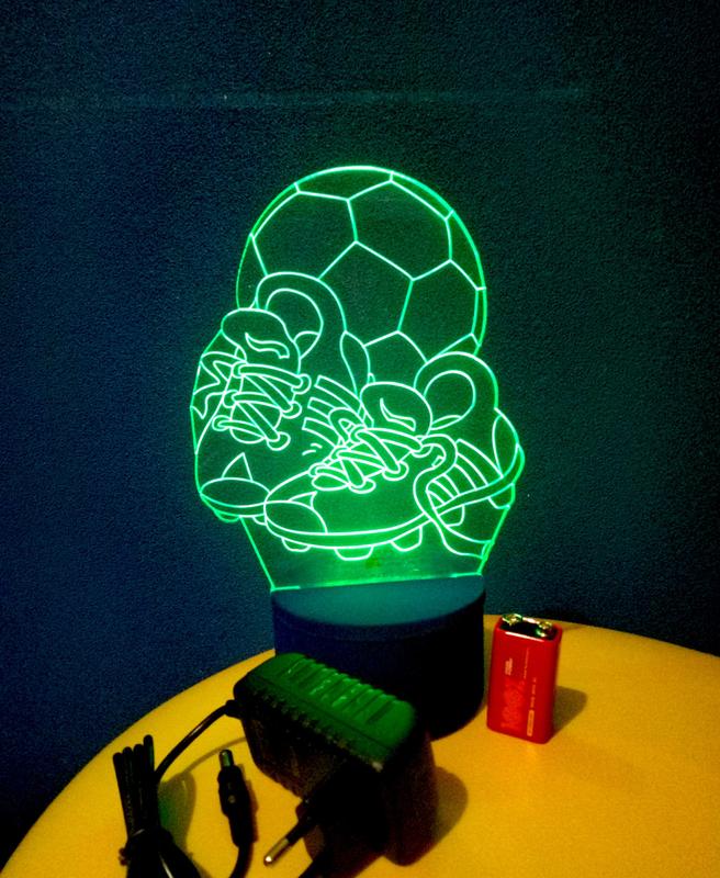 3d-светильник мяч и бутсы, 3д-ночник, несколько подсветок (батарейка+220в)), подарок для ф...