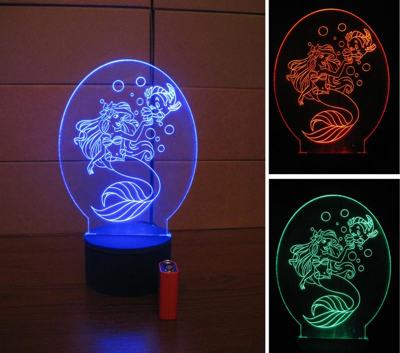 3d-светильник русалочка ариель, 3д-ночник, несколько подсветок (на батарейке), подарок дев...