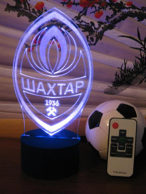 3d-светильник фк шахтер (шахтар), 3д-ночник, несколько подсветок (на пульте), подарок футб...