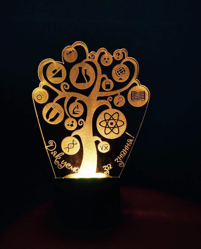 3d-светильник дерево знаний, 3д-ночник, несколько подсветок (батарейка+220в), подарок учит...