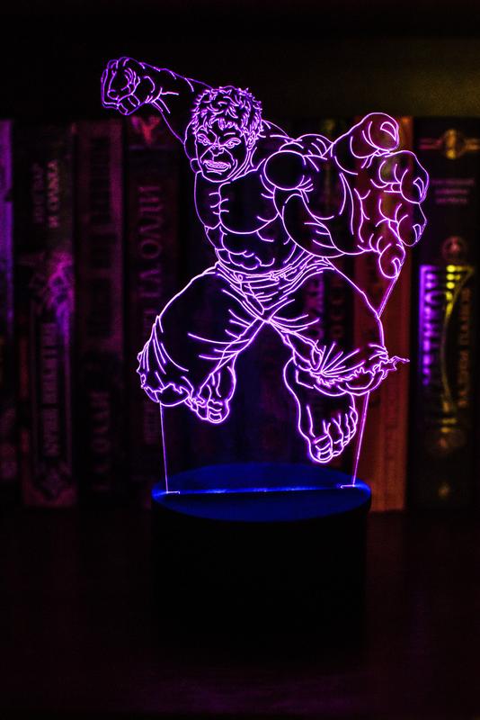 3d-світильник халк, 3д-нічник, кілька підсвічувань (батарейка+220в)