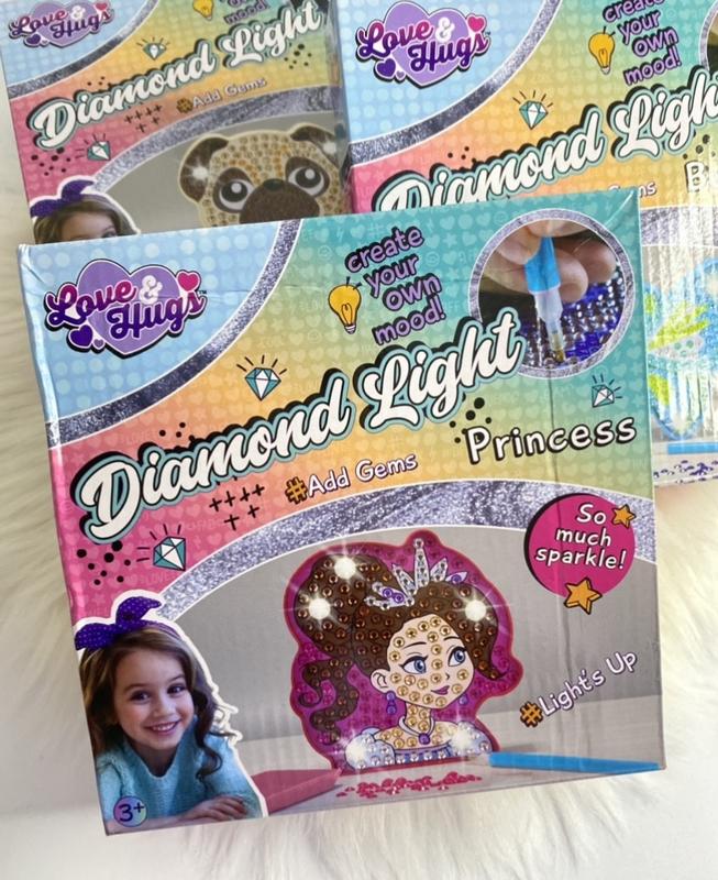 Набір для творчості нічник Princess з алмазної мозаїки • Чудовий подарунок для дітей від 3 років • Підкресліть свою творчість за допомогою світлодіодних ламп • Включає форму, аплікатор і блискучі камені Дозвольте унікальній фантазії ваших дітей стати реальністю в діамантовій картині. Аплікатор дозволить їм самостійно наносити блискучі камінці на форму і таким чином створювати свою фігуру. Завдяки світлодіодним підсвічуванням він буде здаватися ще більш живим. Завершивши, поставте витвір на свою нічну тумбочку, щоб ваші діти могли з ним заснути. На батарейки