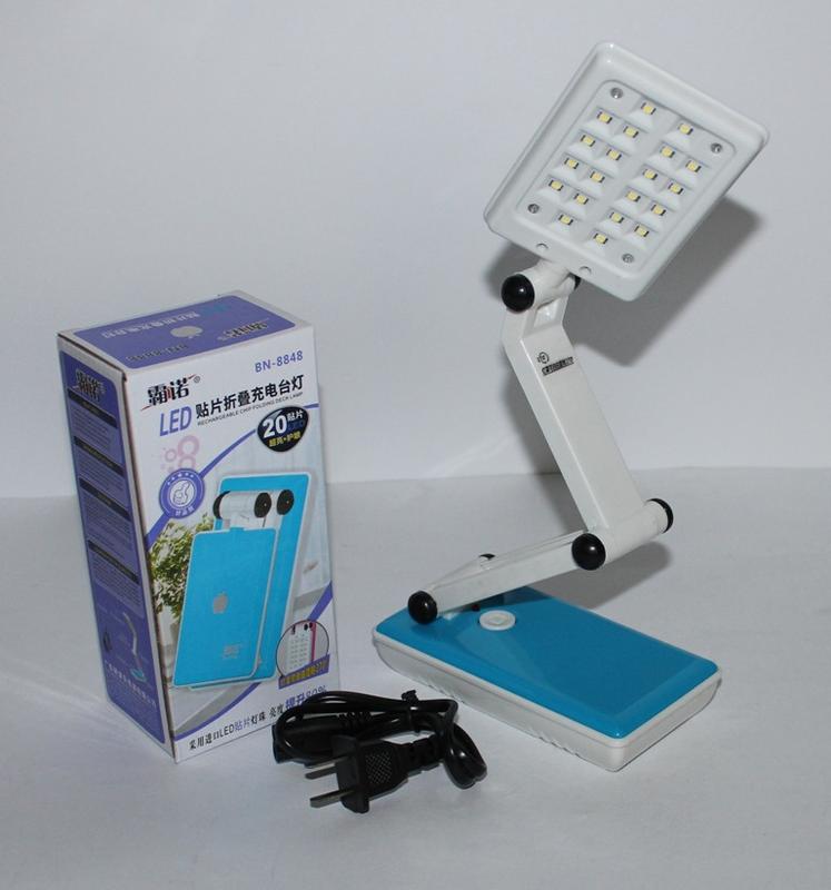 LED лампа, настольная с резервным питанием Напряжение - DC5V-AC220V Емкость аккумулятора - 700mAh Количество LED световых елементов- 20шт Полная зарядка аккумулятора -10 часов На половину мощности лампа будет работать- 12-18часов Кнопка для регулировки на два положения