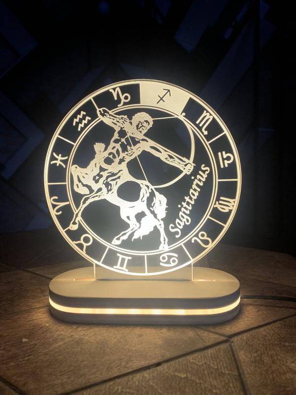 Ночник знак зодиака "стрелец" | деревянный светильник гороскоп 13/13 см от usb | интересны...