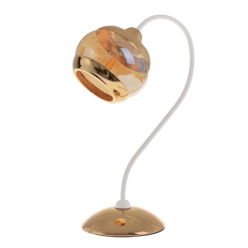 Настільна лампа для будинку в стилі бароко LK-661T / 1 E27 WH + FG має цоколь Е27 і дозволяє встановлювати світлодіодні, енергоощадний або звичайні лампи розжарювання потужністю до 60 Вт. Купити настільну лампу недорого в цьому стилі можна для будинку - спальні або вітальні. Її можна використовувати як нічник або для виконання уроків для дитини - вона легко стає дитячою. Настільна лампа золотистого кольору, має вигнуту ніжку, прекрасно підійде під стиль класика або вінтаж. Ця настільна лампа легка і мобільна, невелика і респектабельна. Світильник виглядає дорого завдяки кольору благородного металу, ніжка біла, плафон скляний димчастого відтінку зі вставками позолоти. Ця настільна лампа - прекрасне додаткове джерело світла як для дорослих, так і для дитини.
