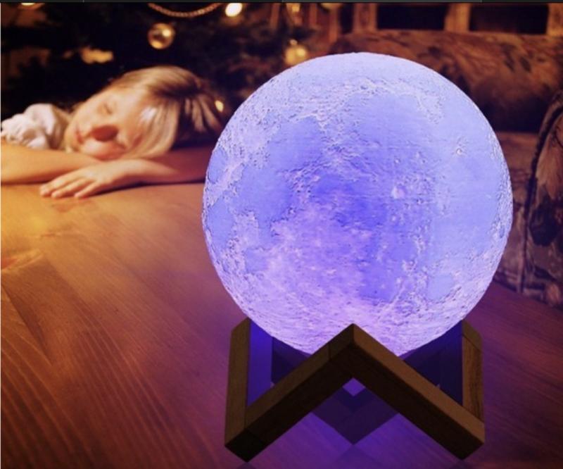 Разноцветный настольный светильник. Светильник-ночник Луна. Светильник-ночник 3D шар Луна Moon Lamp на деревянной подставке 15 см Луна 3D Moon Lamp станет отличным дополнением любого интерьера и великолепным средством для создания атмосферы и уюта. Выполнен с использованием инновационной технологии 3D-печати. В точности повторяют рельеф настоящей Луны. Темными вечерами порой так хочется уюта и тепла - завернуться в теплый плед, налить кружечку горячего шоколада, включить приглушенный мягкий свет и просто посидеть, помечтать, посмотреть в окно, послушать стук дождя по крыше. В такой вечер для создания подходящего настроения идеально подойдут наши светильники 3D Луна. Лампа Луна 3D изготовлена с помощью инновационной технологии 3D-печати. Текстура корпуса имитирует реальный внешний вид кратеров на поверхности Луны и смотрится очень красиво. Мягкий свет равномерно и плавно рассеивается по комнате, дает ощущение уюта и тепла. Более того с ним легче уснуть чем в полной темноте. Такой ночник станет идеальным дополнением к интерьеру не только спальни взрослых, но и в детской. И самые маленькие смогут спокойно засыпать под его светом. Такой светильник будет оригинальным подарком любимому человеку, другу или ребёнку. Создайте атмосферу уюта в вашем доме! Комплектация: - светильник - деревянная подставка - USB-зарядка Материал: PVS+ABS-пластик (отличается более высокой стойкостью к ударным нагрузкам, нетоксичный, без запаха) Световая яркость: 120 люмен Цвета свечения: 5 цветов Кабель зарядки: USB/DC 5V/1A