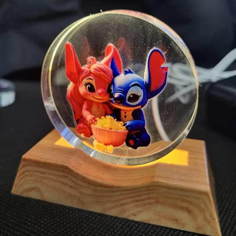 Ночник с рисунками лило и стич на подставке с led подсветкой 8см*8см