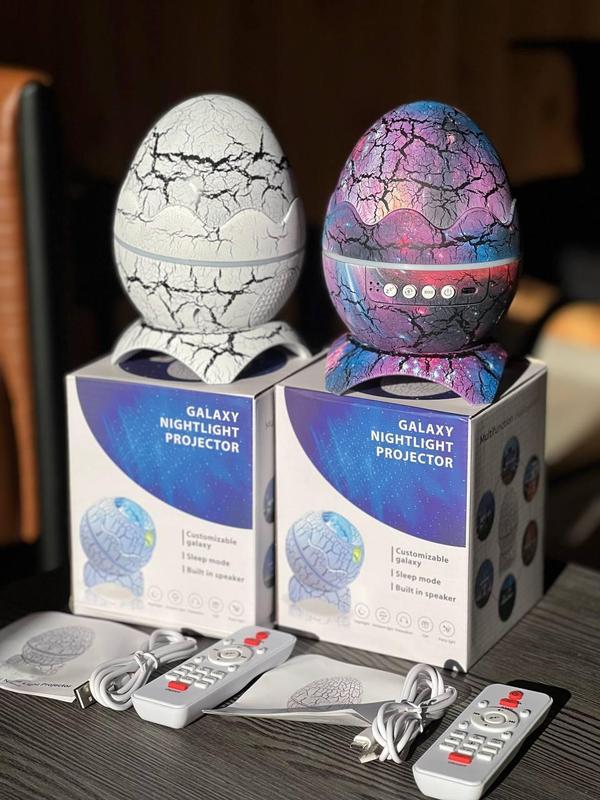 Музыкальный лазерный ночник-проектор “Яйце” дракона” Фиолетовый – это идеальное устройство для создания уникальная атмосфера в детской, игровой комнате или спальне. Он сочетает в себе функции ночного светильника, портативного мини-проектора и домашнего планетария, позволяя проецировать сияющие звезды и планеты солнечной системы на потолке. Ночной светильник имеет 16 ярких проекций, которые проектируют блестящие звезды и имитируют туманность на небе, 19 успокаивающих встроенных звуков, которые одновременно расслабляют и успокаивают время сна или во время медитации. Ваш ребенок сможет наслаждаться крепким сном с нашим универсальным ночником в виде яйца динозавра. Можно включить белый шум, шум дождя, пение птиц, шум океана, треск костер, звук поезда или звуки деревни для вашего малыша. ЯЙЦО Светодиодный проектор в виде ЯЙЦА, звездного неба, Bluetooth 3D Ночник AND AC1569-6