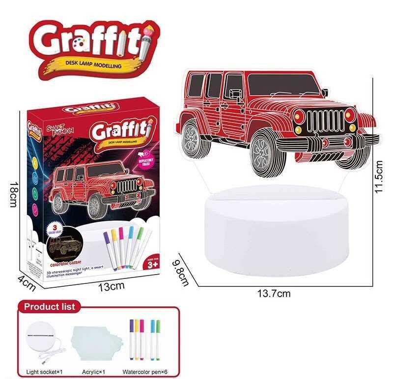 Уникальный ночник 26009 с тремя цветами света Этот ночник работает от сети через USB кабель и оснащён подсветкой с возможностью выбора одного из трёх цветов света. В комплект входят фломастеры, позволяющие раскрасить акриловую панель и создать свой собственный дизайн светильника. - Питание: USB кабель, сеть - Три цвета света на выбор - Акриловая панель для рисования - Фломастеры в комплекте - Идеально для детской комнаты и творчества