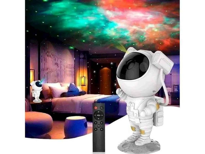 Ночник-проектор Прекрасный выбор для детской комнаты, который создаст для ребенка астмосферу звездной галактики. Проектор в виде космонавта покажет вам проекцию сведенного неба, и даже всей Галактики. Голова космонавта держится на магнитах, поэтому ее можно поворачивать в разные стороны, а также отрегулировать руки. фигурка устойчиво стоит на основе под видом лунной поверхности. Одним из главных преимуществ проектора является его подвижность. Вы можете придавать рукам астронавта разное положение и регулировать угол наклона головы. Тем самым Вы регулируете угол и направление проекции, поскольку проектируемая лампа находится в шлеме космонавта. Этот милый и забавный ночник станет настоящей изюминкой интерьера! Для максимального удобства ночник Астронавт оснащен пультом дистанционного управления с диапазоном действия 5 м и двумя режимами автоматического отключения - 45 минут и 90 минут. Вам не придется вставать с постели, чтобы выключить его, или в очередной раз заходить в детскую, рискуя разбудить ребенка. Просто нажмите кнопку на пульте и выберите нужный Вам таймер. Направление звезд можно регулировать, поворачивая голову космонавта в любом направлении! База должна быть установлена перед использованием. Убедитесь, что ноги космонавта полностью касаются нижней части базы. Функция таймера доступна при нажатии соответствующей кнопки на пульте дистанционного управления. Вариантов два, по нажатию кнопки диод на спине космонавта загорится одним цветом, информирующим о продолжительности режима: Синий режим 45 минут, Красный режим 90 минут. После этого проектор отключится, позволяя вашему ребенку спать всю ночь! Характеристики: Материал корпуса: ABS пластик, Источник света: светодиодный светильник, Режим переключения: пульт дистанционного управления, Источник питания ночника: USB, Источник питания пульта: батарейки АА, Диапазон действия пульта: 5 м, Режимы свечения: 8, USB Блок питания комплект не входит, Мощность свечения: 5 Вт, Вес: 655 г