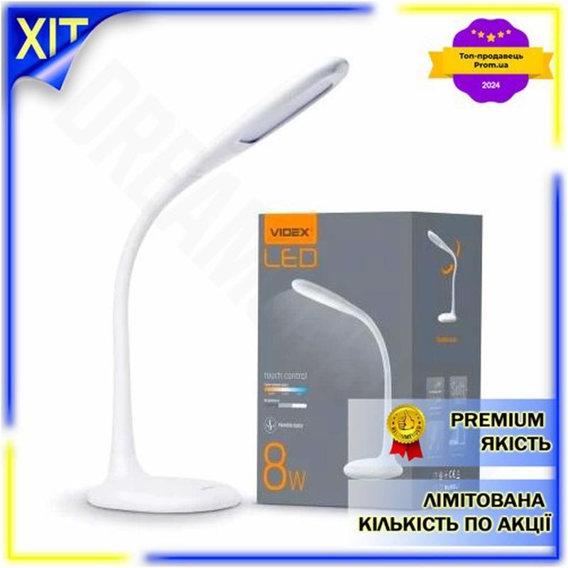Dm лампа настольная led спецификация 2.2 videx белая 8 вт сенсорное управление для офиса и...