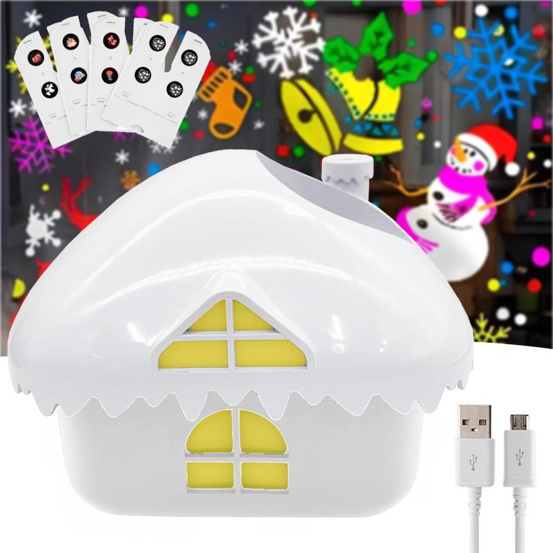 Новогодний ночник проектор от usb + 5 сменных линз, christmas lamp, белый