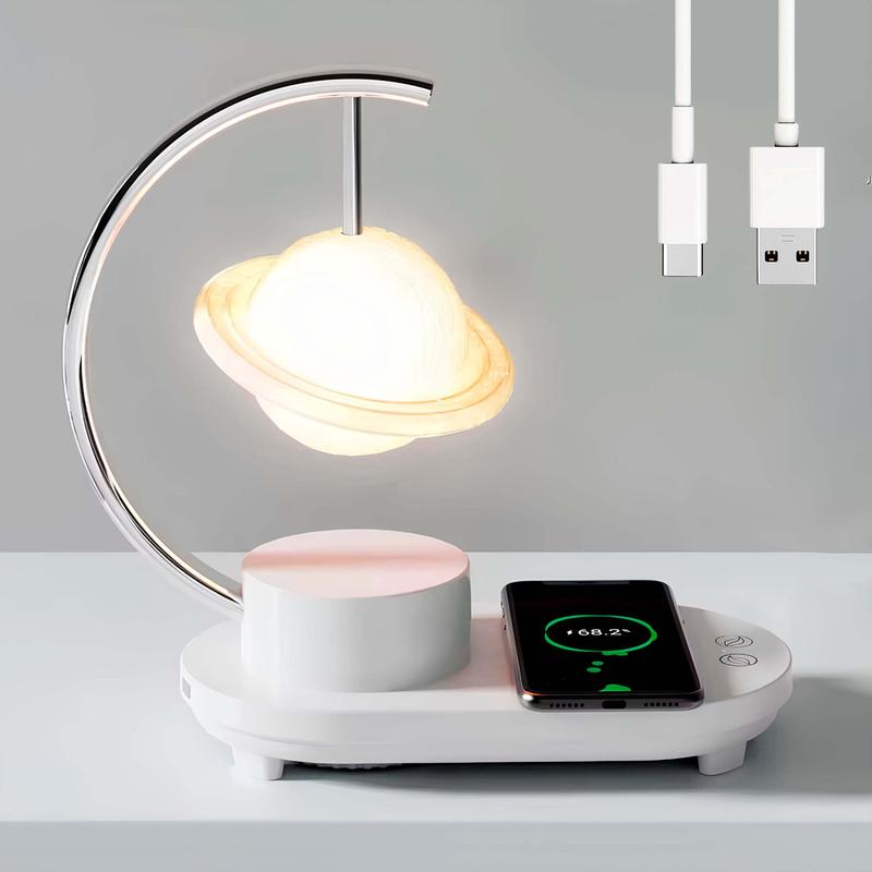 Лампа ночник с беспроводной зарядкой (26×24×13см), от usb, сатурн