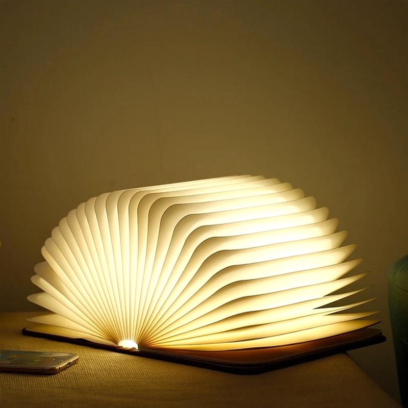 Ночники для сна, Лампа ночник для дома, Ночник для ребенка на ночь, Детские необычные ночники, NST Внесите волшебство в свою жизнь с помощью складной книжной лампы. Осветите свой мир уникальным и очаровательным способом. На первый взгляд кажется, что это обычная книга, но на самом деле это портативная складная книжная лампа, которую можно легко прикрепить к любой металлической поверхности, включая холодильник. В выключенном состоянии он скрывает свою истинную сущность; при освещении он превращается в завораживающую волшебную книгу, которая, кажется, содержит мудрость, превосходящую воображение. Светильник в виде книги хорошо впишется в любой интерьер. Для включения ночника достаточно открыть книгу, а для отключения закрыть ее. При каждом открытии книга меняется цвет (мягкий желтый, красный, зеленый, синий и последний - динамически изменяющийся режим свечения). Раскрывая «книгу» шире - получим больший поток света, можно также раскрыть ее на 360 градусов, превратив в импровизированный светящийся веер. Питание экономных светодиодов, обеспечивающих свечение, производится за счет встроенного литий-ионного аккумулятора, емкости которого хватает на длительный час (от 4 до 8 часов). Характеристики: - Рабочее напряжение: 5 В/1 А - Емкость аккумулятора: 1000 мА - Срок службы светодиодов: около 50000 часов - Цветовая температура: 4500К - Мощность: 400 люмен - Источник питания: встроенный перезаряжаемый литий-полимерный аккумулятор - Магнитные чехлы, которые можно прикрепить к любому металлическому предмету на стене - Материал изделия: дерево и влагостойкая бумага Tyvek - Размеры в закрытом состоянии: 9 х 12 х 2 см - При открытии на 180 градусов - 18 x 12 x 8,5 см Комплектация: - Книга-ночник. - USB-кабель. - Упаковка.