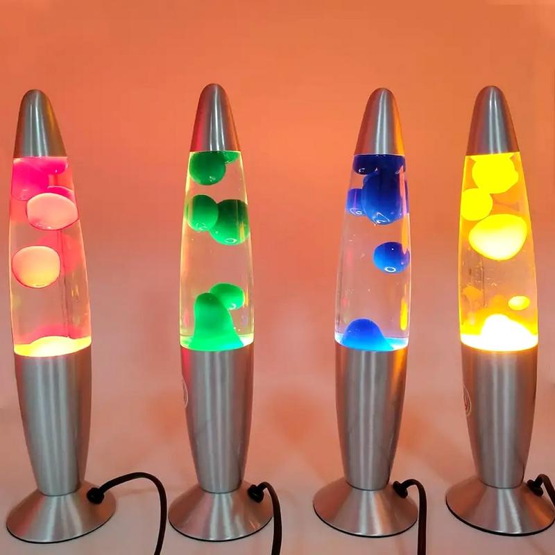 Ночник для девушек, Ночник дитячий, Ночник декоративный (35см), Ночник дизайнерский, NST в наличии: синяя, зеленая , красная, желтая Лавовая Лампа -- декоративный светильник, представляет собой прозрачную стеклянную емкость (обычно цилиндр) с прозрачным маслом и полупрозрачным парафином, снизу которых расположена лампа накаливания. Лампочка нагревает и подсвечивает содержимое цилиндра, при этом происходит «лавообразное» перемещение парафина в масле. Эффект основан на том, что при обычной температуре парафин немного тяжелее масла (и тонет в нем), а при небольшом нагреве парафин становится легче масла и всплывает. Изобретена в 1960-х годах, выпускается и используется для украшения помещений и в настоящее время Как ей пользоваться: - постарайтесь сделать так, чтобы лампа стояла устойчиво; - не допускайте попадания прямых солнечных лучей на лампу; - после 10-часовой непрерывной работы выключайте лампу на некоторое время; - не взбалтывайте лампу и не открывайте крышку; - пыль можно удалять влажной тряпкой.