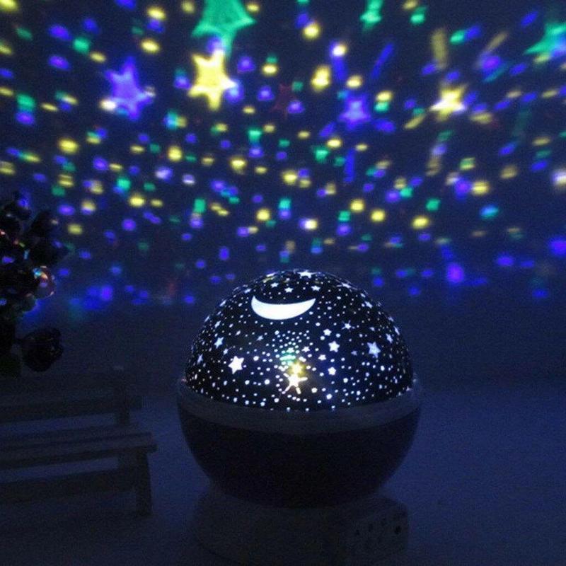 Детский ночник на аккумуляторе, Ночники в детскую комнату, Детские светильники ночники, NST Круглый вращающийся ночник-проектор звездное небо прекрасный подарок для вашего ребенка. Он осветит комнату вашего малыша прекрасными звездами и луной. Питание светильника возможно от usb провода или от четырёх батареек типа ААА. Комплектуется полупрозрачным матовым колпаком, который позволяет создать более приглушённое уютное свечение. Ночник имеет три кнопки управления, которые соответствуют трём режимам работы (их можно совмещать в любой комбинации): Особенности: 1) довольно яркая проекция белого света (белые звёзды); 2) режим RGB с возможностью выбора одного или переменного свечения красного, синего и зелёного цветов; 3) вращение сферы. Характеристики: - Создаёт движущиеся проекции на стены и потолок. - Источник света: 4 светодиодных ламп. - Режимы работы: 3 кнопки (вращение, белый свет, разноцветное свечение). - Напряжение: 5 В. - Питание: USB-кабель или 4 батарейки ААА (в комплект не входят). - Материал: пластик. - Размеры: 13*13*14.5 см. Комплектация: - проектор звездного неба вращающийся Star Master Dream rotating projection lamp; - полупрозрачный матовый колпак; - USB кабель питания; - картонная упаковка; ВНИМАНИЕ! Не используйте одновременно батарейки и USB-шнур.