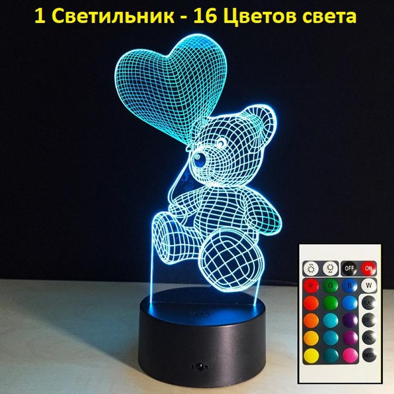 3d светильник "мишка с сердцем", оригинальный подарок для мамы, необычные подарки для деву...