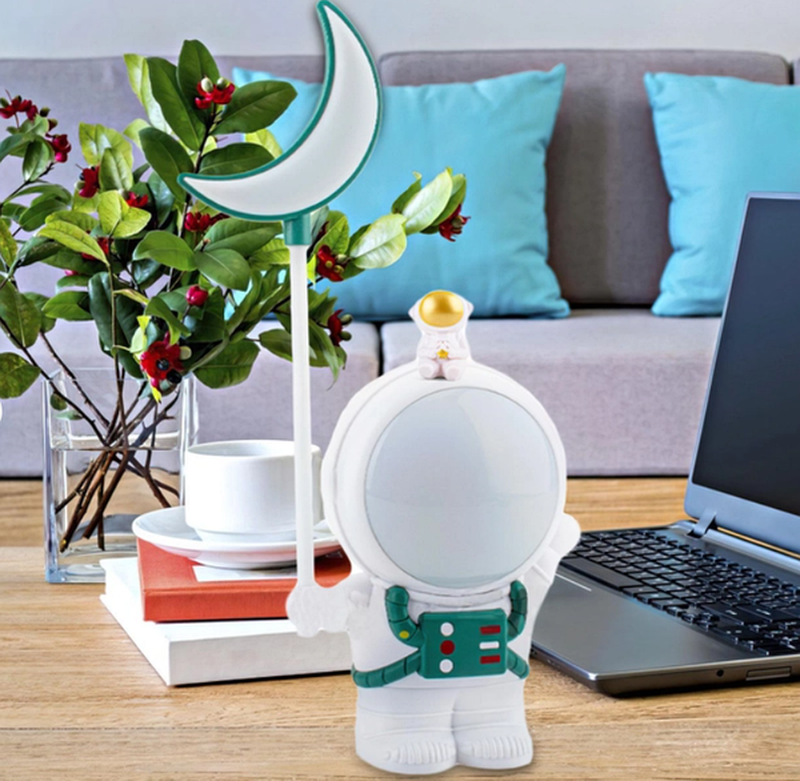 Детский ночник астронавт. Светильник беспроводной. Заряжается через кабель USB, который идет в комплекте. Подойдет для использования в детской комнате, спальне, детской кроватке. Детский светильник будет отличным и оригинальным подарком для вашего ребенка или молодых родителей, которые ждут малыша. Ночник выполнен в виде астронавта и подарит ощущение космоса в комнате. Светильник – ночник имеет 2 режима свечения: многоцветное ночное приглушенное свет и яркая светодиодная лампа, которую можно использовать как настольная лампа. Каждый режим свечения светильника включается отдельной кнопкой, которая слегка утоплена в корпус, чтобы избежать случайного нажатия ребенком. Ночник имеет гибкий провод, благодаря которому легко настроить угол падения света. В ночнике встроена аккумуляторная батарея. Светильник излучает мягкий белый свет и не слепит глаза. led лампа поможет ребенку успокоиться и подготовиться ко сну после насыщенного дня. Ночник космонавт идеальный подарок для детей и взрослых, на день рождения, именины, крестины или просто так без возможности просто порадовать. Характеристики: Тип: лампа Материал: ABS пластик; Тип лампы: Светодиодная; Тип выключателя: сенсорный; Количество режимов: 2; Питание: аккумулятор; Размер: 28х11.5х6.5см Комплектация: Детская настольная лампа ночник с точилкой Астронавт EL- HD3410 Желтая; USB кабель; Фирменная коробка.