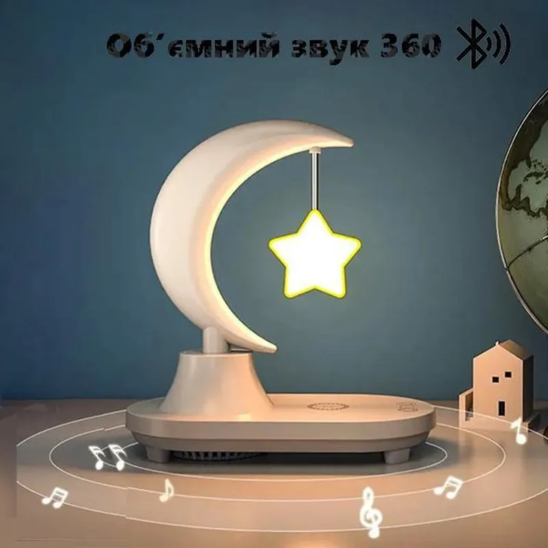 Эта многоцветная лампа ночник с НФС зарядкой для iPhone, Android с поддержкой NFC зарядки, на Аккумуляторе 2000 mAh, объединяет в себе инновационные технологии и эстетичный дизайн для создания уникального освещения и обеспечения музыкального сопровождения в вашему помещении. Она создана для тех, кто ценит комфорт и функциональность в быту. Литиевая батарея 18650 с емкостью 2000 mAh обеспечит надежное питание, а номинальное напряжение 5V и мощность 10W гарантируют эффективную работу устройства (беспроводная зарядка работает только при включении самого устройства в сеть через кабель TYPE-C). Встроенная Bluetooth колонка с объемным звуком 360 позволит вам наслаждаться любимой музыкой из любого совместимого устройства, создавая атмосферу релаксации или развлечений. Многоцветная LED подсветка придаст помещению очарование и уют. Кроме того, вы сможете настроить яркость света с помощью функции регулировки яркости, чтобы создать оптимальную атмосферу для любых нужд. Время работы лампы составляет до 3 часов в зависимости от выбранных режимов и громкости, а время зарядки 3 часа с помощью кабеля TYPE-C, который идет в комплекте. ОСОБЛИВОСТІ ПРИСТРОЮ: - Многоцветный ночник: Предлагает включать белый свет и регулировать его яркость, или переходить между 7 разными цветами, что добавляет атмосферности вашему помещению; - Портативная колонка с объемным звуком 360°: Создает эффект присутствия на сцене и максимальную атмосферность для вас и вашего окружения; - Беспроводная зарядка NFC для поддерживаемых телефонов: Данный товар оснащен беспроводной NFC зарядкой, которая позволяет быстро и удобно заряжать поддерживаемые устройства без необходимости использования кабелей (беспроводная зарядка работает только при включении самого устройства к сети через кабель TYPE-C); - Заряжается через кабель TYPE-C: Для зарядки самого устройства используется кабель TYPE-C, обеспечивающий быструю и эффективную зарядку; - Подключение ко всем устройствам с поддержкой Bluetooth: Данный товар может легко подключаться к устройствам с поддержкой Блютуз, что позволяет вам наслаждаться музыкой или прослушиванием аудиокниг с любого устройства за несколько простых шагов; - Подключение по кабелю AUX: Для большего комфорта и возможности подключения к различным устройствам, также существует возможность подключения по кабелю AUX; - Высококачественные материалы: Изготовлен из высококачественных материалов, данный товар является безопасным, надежным и долговечным; - Отличный подарок: благодаря своим функциям и дизайну, этот товар станет отличным подарком для друзей или родных, предоставляя им не только полезность, но и удовольствие от использования. Этот белый светильник LED Music Lamp станет отличным дополнением к вашему интерьеру, привнося в него не только эстетическую красоту, но и функциональность и удобство использования. Важно! Беспроводная зарядка работает только при подключении самого устройства на зарядку по кабелю TYPE-C, который идет в комплекте. Во время зарядки устройства светит красный индикатор. Когда заряжается телефон через НФС зарядку, светит синий индикатор. Комплектация: - устройство в форме луны со звездой белый - инструкция на английском - кабель TYPE-C - кабель AUX - цветная упаковка ХАРАКТЕРИСТИКИ: Материал: ABS + PC Цвет: Белый Номинальное напряжение: 5V Мощность: 10W Номинальный ток: 2A Категория аккумуля