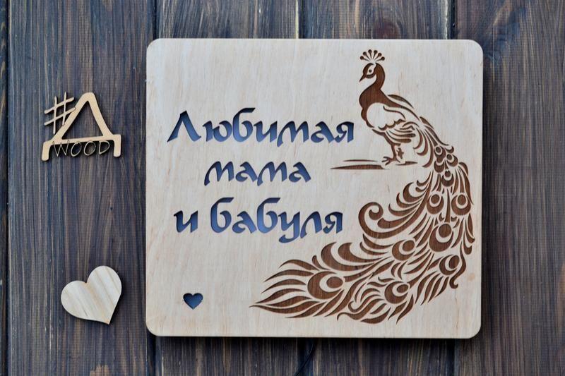 Ночник из дерева для мамы с павлином