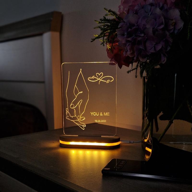 Светильник ночник, с Гравировкой подарок на свадьбу, годовщину года, и день рождения. В комплекте со светильником идут кабель типа C и блок питания, что делает его использование еще более удобным. Светильник также может работать от повербанка, что обеспечивает дополнительную мобильность и удобство. Максимально быстрая и эффективная гравировка персонализированного сообщения или имя делает этот светильник идеальным подарком на любой повод. Обратитесь к нам, и мы вернем все возможное, чтобы ваши индивидуальные надписи были готовы в кратчайшие сроки, не занимая много времени. Светильники представлены в трех формах: сердце, круг и прямоугольник, позволяющий вам выбрать дизайн, который лучше всего подходит к вашему интерьеру. Светильник на дубовой подставке. С сенсорной кнопкой