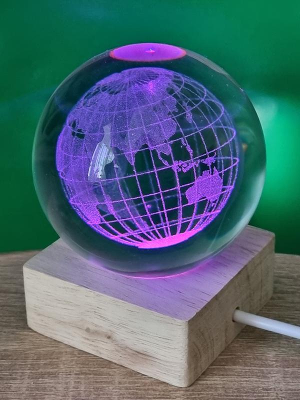 Светильник ночник подсветка "Кришталлическая Шар" выполнена из экологических материалов - дерева и стекла. Внутри стеклянного шара нанесена лазерная гравировка в виде Земли. С квадратной базой со сменой цветов. 3D ночник имеет размеры: - Диаметр шара: 6 см; - Высота подставки: 2 см. Работает светильник от USB-шнура. Ночник - подсветка стеклянный шар отлично подойдет для детской комнаты, спальни или кабинета. Декоративный мини светильник "Земля" - отличный подарок на день Рождения, Новый Год, новоселье: близким людям, избирательному другу, коллеге по работе.