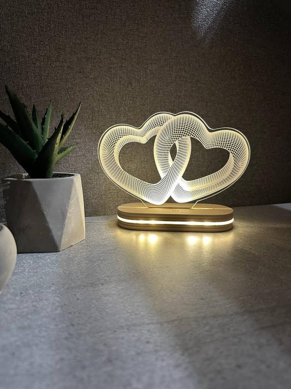 Ночник Два сердца "кольца" ❤️ Любовь на века! 🥰 Размер M (универсальный) - 19/13см Подставка с питанием от USB, 5V (от розетки или павербанка) в комплекте есть адаптер к розетке. ДОДАТКОВО: ❗️Возможна индивидуальная надпись на подставке❗️+50грн (просто дает нам ваш вариант, а мы его наносим на подставку планера) ▪️Подставка с сенсорной кнопкой + 60грн (можно включать и выключать при подключенном питании) ▪️Подставка на аккумуляторе + 330грн (зарядка в комплекте) 25 часов без дополнительной зарядки ▪️Есть 3 вида подставок с подсветкой: светлое дерево, темное дерево, и сплошное дерево. См. фото в посте. ✅Время на изготовление и отправку до 3х дней
