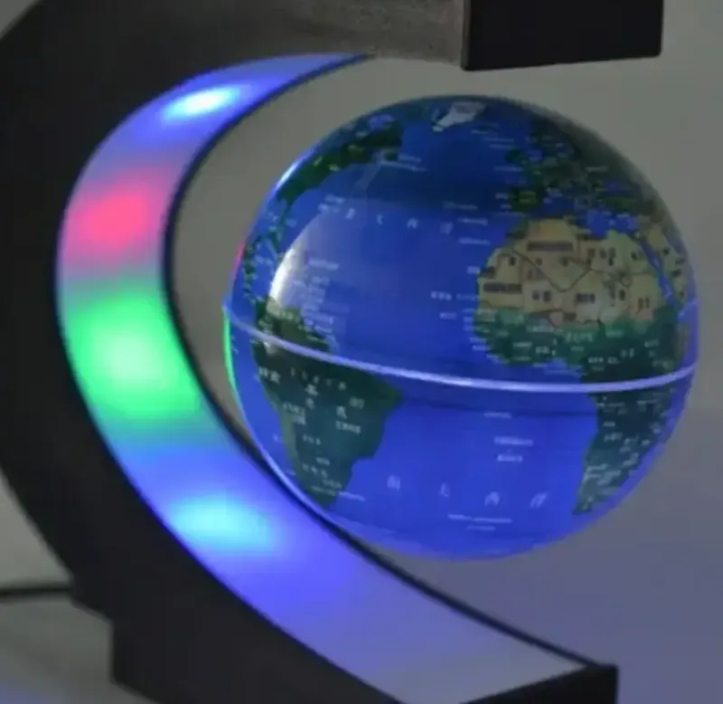 Имитация магнитного поля планеты Левитация – невероятное зрелище. Но оно происходит просто: глобус содержит магнит и поддерживается в воздухе электромагнитным полем, создающим датчики на подставке. Легкое прикосновение заставляет его вращаться, подобно настоящей планете Земля Световые эффекты Фантастическое впечатление подчеркивает светодиодную подсветку, встроенную в дугу подставки. Неяркий рассеянный свет позволяет использовать лампу как креативный ночник, совсем не мешающий Умное потребление электроэнергии Устройство работает от розетки и подключается к сети с помощью адаптера. Он потребляет всего 30 Вт электроэнергии, что гораздо меньше, чем обычная лампочка. Магия левитации объясняется просто. Глобус содержит внутри магнит и поддерживается в воздухе электромагнитным полем, создаваемым подставкой. Легкое прикосновение к шару, приводит его в действие, и он начинает вращаться, подобно настоящей Земле. Подчеркивает фантастический эффект светодиодной подсветки, встроенной в дугу подставки. В ее свечении парящий глобус выглядит совершенно футуристично. Неяркий рассеянный свет дает возможность использовать его как оригинальный ночник – в полумараке он выглядит особенно эффектно. В процессе работы устройство потребляет всего 30 Вт электроэнергии – это меньше, чем тратит лампочка накаливания обычного светильника. К электрической сети антигравитационный глобус подсоединяется с помощью адаптера, работающего при напряжении от 110 до 240 В. Летний глобус является отличным подарком не только для взрослых, но и для детей всех возрастов. Электромагнитный глобус будет прекрасно выглядеть как на строгом рабочем столе бизнесмена, так и в детской комнате рядом с другими игрушками. ХАРАКТЕРИСТИКИ: Питание: от сети 220 В; Выходная мощность: 12 В, 250 мА; Источник света: 4 светодиодных лампочки; Диаметр шара: 8.5 см; Материал: пластик; Размеры: 17,2 x 18 x 4.5 см; Вес: 350 г.
