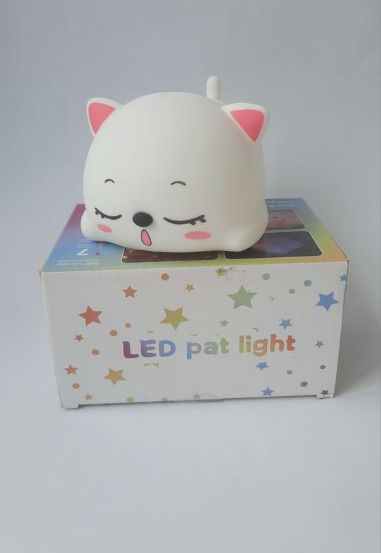 Ночник силиконовый Спящий котенок на батарейках ААА Силиконовый ночник "Спящий котенок" - это светодиодный ночник со всеми цветами радуги. Нажав кнопку включения с нижней стороны, светильник начнет светится тёплым белым светом. При легком хлопке по макушке, он начнет изменять цвет по кругу и будет работать в таком режиме до следующего хлопка. Второй хлопок фиксирует цвет - Котенок будет светится в одном свете до следующего - третьего хлопка. Последний - выключит лампу. А дальше все сначала. Преимущества: свет не имеет бликов и не слепит глаза; приятный мягкий свет абсолютно не мешает сну; лампа - не нагревается - малыш не обожжется; ночник мягкий и приятный на ощупь; абсолютно безопасен для здоровья; плафон изготовлен из гипоаллергенного силикона; не имеет запаха Характеристики: Цвет: белый Размер: 137*98*76 мм Материал: Силикон, Пластик Мощность: 1,5 Вт работает от 3-х батареек ААА(не входит в комплект) Вес: 140 г