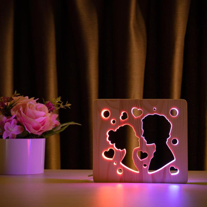 Светильник ночник из дерева "поцелуй" с пультом и регулировкой цвета, двойной rgb