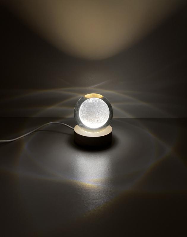 Кришталева 3д куля, з зображенням місяця, USB вхід, 8 см висотою, гарно освітлює кімнату