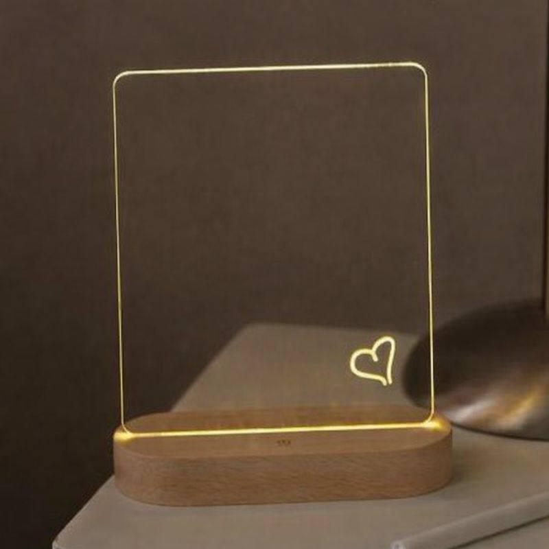 Ночник-планер с маркером Удобный и стильный способ организовать свой день! Ночник-планер позволяет легко записывать задания, желания, цели и мечты или рисовать или оставлять уведомления. Выглядит эстетично и красиво днем, а ночью еще и эффектно подсвечивается теплым светом. Отличный вариант для себя или в качестве подарка родным и друзьям. В комплекте акриловая панель размером 16х14 см, деревянная основа, белый маркер, салфетка и инструкция. Питание от сети или через usb от павербанка (павербанк не идет в комплекте).