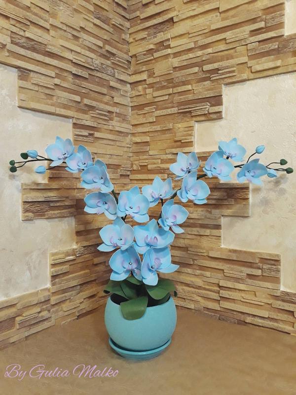Светильник из фоамирана в виде орхидеи "Фаленопсис". На светильнике на фото две ветки по 9 и 7 светодиодов. Высота 60 - 65 см, диаметр цветка 6 - 7,5 см, Работает от 220.