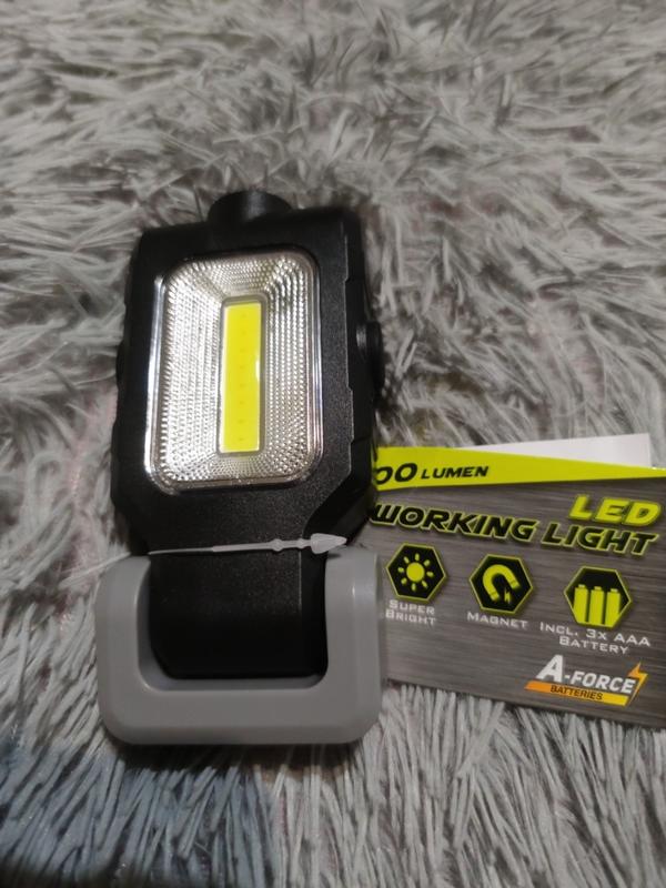 фанарик работает от батареек 3 шт,два позиции подсветки,на фото видно,ье подставка я регулируется как ставить фаар