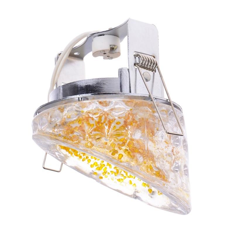 Точечный светильник HDL-G31 обладает оригинальным дизайном и сочетает в себе два разных материала. Металлическое основание и стеклянный плафон. Источником света в данной модели точечного светильника является одна галогенная рефлекторная лампа с цоколем GU5.3, которая работает от напряжения как от 220В, так и от 12 В. Для его подключения можно обойтись без трансформатора. Светильник предназначен для освещения отдельных участков помещения или подсветки декоративных элементов декора. Данный светильник отлично дополнит основное освещение и станет частью вашего интерьера.