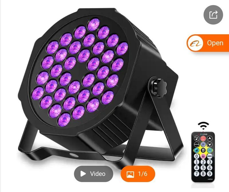 Кілька примірників у наявності U`King Black Lights 72 Вт світлодіодне ультрафіолетове чорне світло, освітлення сцени від DMX і пульт дистанційного керування для освітлення сцени дискотеки, весілля, дня народження Конструкція Plug and Play, чорні ліхтарі використовують світлодіодні мікросхеми високої потужності 2 В. Широкий кут променя охоплює простору кімнату, весілля, день народження, галерею. Кілька режимів: один колір, зміна стрибка, згасання, активація звуку, строб, пульс, скачки. 7 каналів DMX і керуються ІЧ-пультом. Простий в експлуатації. Світильники сцени з портативною подвійною ручкою можна встановити в будь-якому зручному для вас положенні та регулювати кут. Пара може дозволити видимим і білим флуоресцентним матеріалам світитися в темряві, створюючи спеціальний ефект освітлення, який чудово підходить для яскравих неонових вечірок, плакатів із чорним світлом, розпису тіла. Виготовлений з екологічно чистої оболонки ABS, УФ-світлодіодний чорний ліхтар із вбудованим безшумним вентилятором забезпечує найкраще розсіювання тепла, більш стабільну та тривалу роботу. 47
