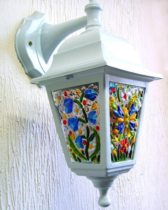 Оригинальный светильник для дома. Стекла для светильника изготовлены из цветного стекла, в технике фьюзинг (запекание стекла при высоких температурах). Корпус светильника- пластик (белый). Питание- 220 вольт, рекомендуется использовать энергосберегающие лампы. Размер: около 30 см. Цена за один светильник. Дополнительные характеристики: Вид : Настенные
