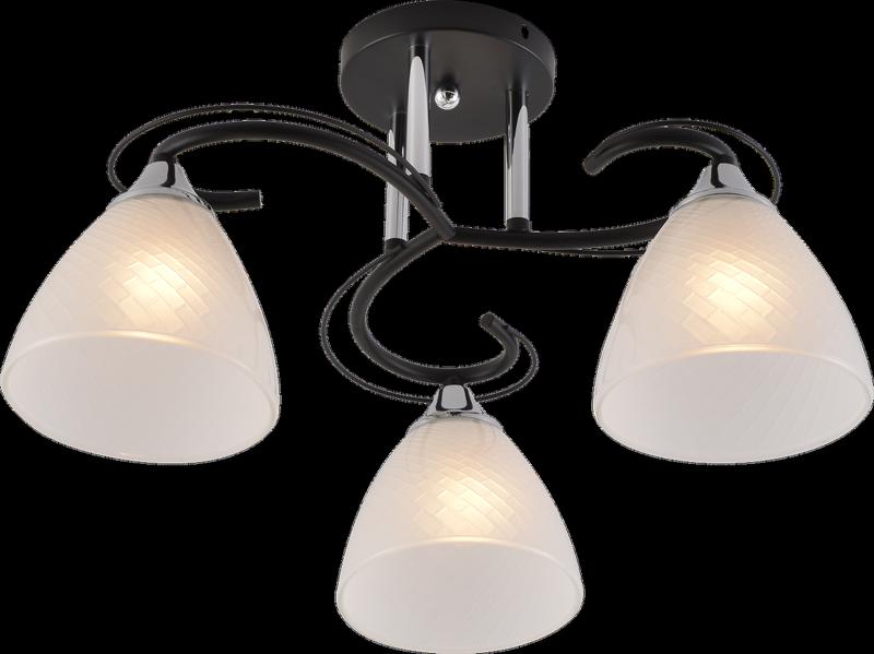 Корпус люстры из металла качественно окрашен в черный цвет с элементами хром. Размер в диаметре: 47см., высота от потолка: 24см. Плафоны из прчного стекла высотою 11см., и диаметром 13см. Патроны стандартные е27. Крепится на планку, диаметр потолочной тарелки: 1 Красиво и свежо выглядит "в живую". Благодаря объемному плафону есть возможность установить лампы большой мощности и получить максимум света. Надежно упакуем и быстро отправим! Удачных покупок! ))