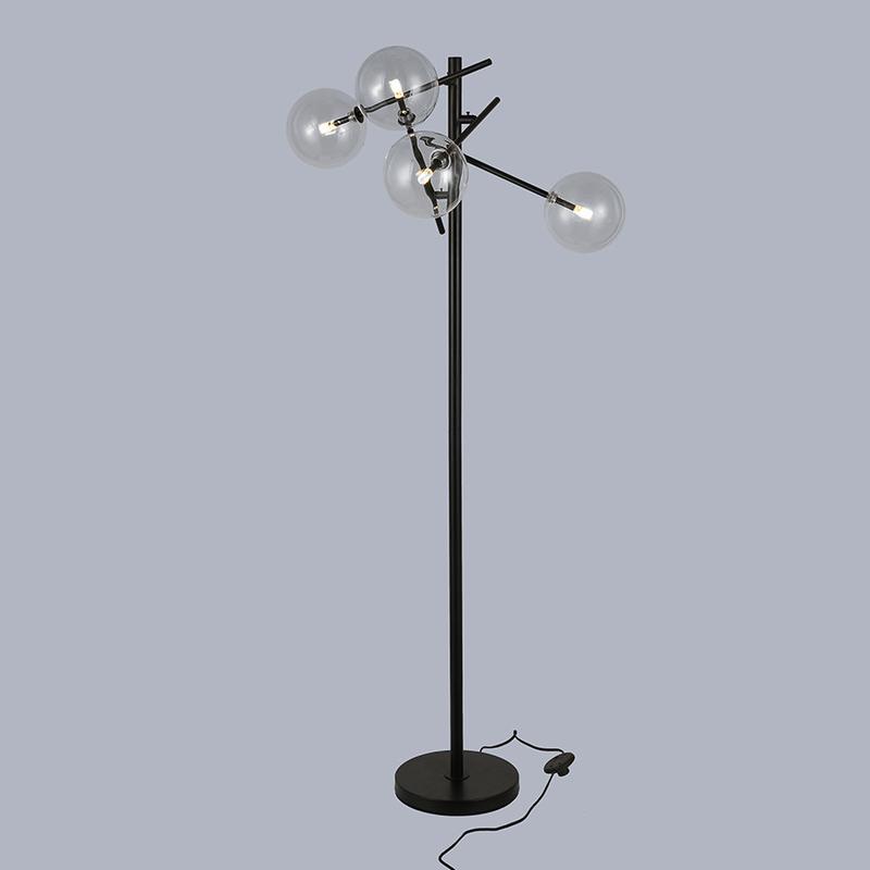 Элегантный современный торшер преобразит атмосферу в вашем доме и добавит уюта. Изящный светильник подойдет к интерьеру в стиле арт-деко, модерн и лофт. Он будет идеально дополнять вашу спальню, гостиную, детскую в вашем доме/квартире или, например, кафе/ресторане. Торшер сделан из металла в черном цвете, его дополняют стеклянные плафоны, что станет стильным акцентом в вашем интерьере. В данной модели регулируется направление трубочек с шарами- плафонами, благодаря чему вы сможете установить освещение так, как вам будет удобно. Светильник рассчитан на 4 лампы с типом цоколя G9 и подойдет в качестве дополнительного освещения (прикроватное, декоративное). Также в комплекте идут лампочки. - Цвет - чёрный - Материал - металл, стекло - Источников света - 4 - Тип цоколя - G9 - Лампочки в комплекте - Размер - 70x145см (ш/в) - Диаметр основания - 25см - Диаметр плафона - 15см - Регулируется направление трубочек с шарами - Длина провода - 155см - Расстояние от торшера до кнопки - 35см