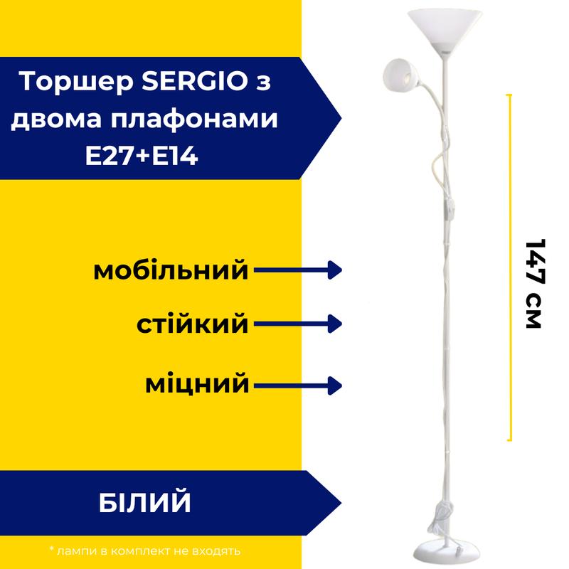 Торшер с лампой для чтения 147см sergio ii е27+е14 tm lumano белый