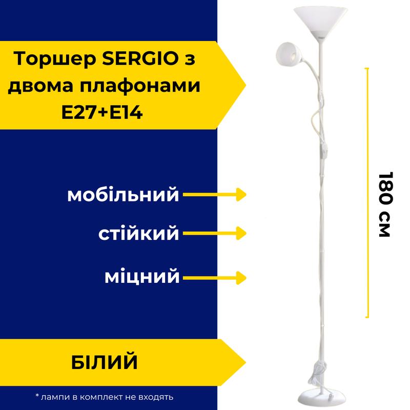 Торшер напольный на две лампы sergio 180 см е27 + е14 белый tm lumano