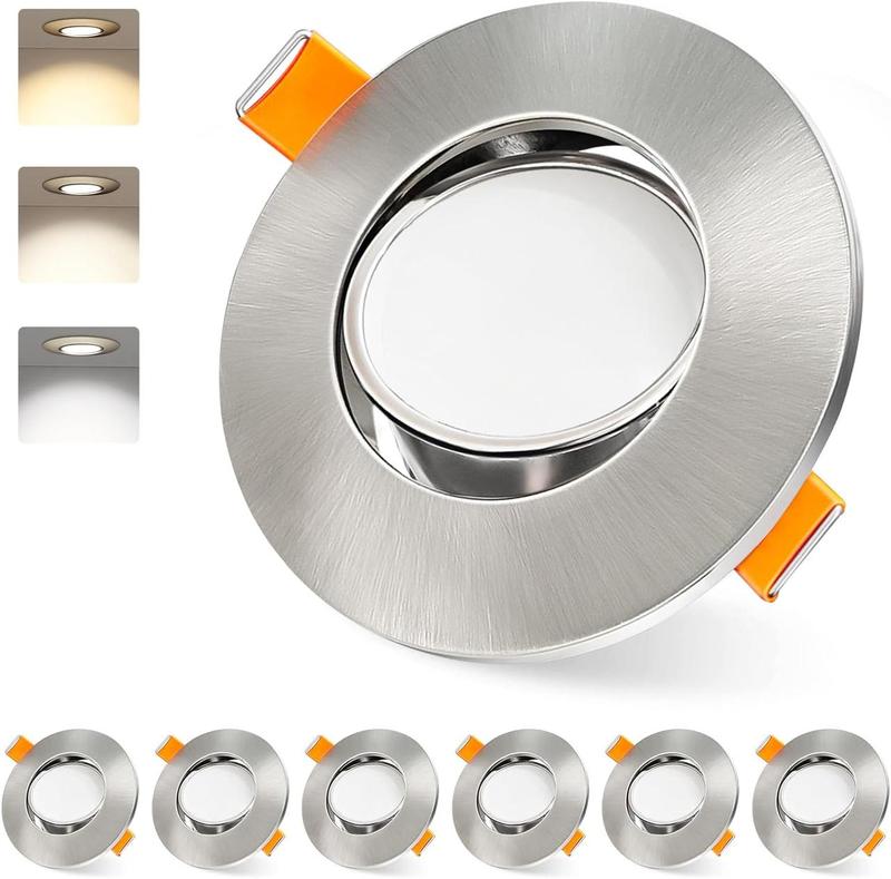 KYOTECH светодиодный встраиваемый светильник: светодиодные встроенные светильники 5 Вт со SMD светодиодами новейшей технологии обладают высокой энергоэффективностью и низким потреблением, экономят до 90% по сравнению с галогеновыми лампами. Интегрированный дизайн делает внешнее питание лишним и имеет хороший теплоотвод. Нет УФ-излучения, не раздражает глаза, лучшая защита для глаз. Регулируемая яркость, настраиваемая цветовая температура. Диммер не входит в комплект, наши встроенные светильники могут работать без димеров на полную мощность. Индекс цветного воспроизведения ≥ 80. 120° шире. Светодиод 230 В. Цветовая температура может быть установлена на 3000 К (теплый белый), 4000 К (нейтральный белый) или 6000 К (холодный белый), которую можно настроить с помощью переключателя-слайдера на задней части света, вы можете опробовать и выбрать наиболее подходящий перед установкой. IP45 с 45° вращением: Светодиодные встроенные светильники используют огнезащитный материал PBT (алюминий внутри, внешний PC), который имеет хорошие теплоотводы. Встраиваемый светильник с вращением на 45° идеально подходит для использования во влажных средах, таких как ванные комнаты, кухни, коридоры, основы и т.д. Простая установка: ультратонкие светильники со встроенным светодиодом с глубиной установки всего 30 мм. Эти плоские встроенные светильники идеально подходят для ремонта и новых декораций. Диаметр 90 мм, необходим размер выреза в потолке диаметром 68-80 мм. Прямое подключение до 230 В, не требуются дополнительные трансформаторы или аксессуары. Экономичность и энергоэффективность: Светодиодные светильники с потреблением энергии 5 Вт, высокая яркость 450 люмен, эквивалентно 50 Вт галогенной лампы, срок службы до 30 000 часов.