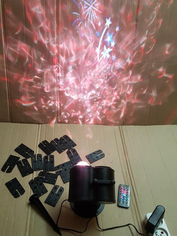 Без коробки кабель питания переработан на штекерный. см. фото. Описание ЛАЗЕРНЫЙ ПРОЕКТОР 18 СЛАЙДОВ С ПУЛЬТОМ УПРАВЛЕНИЯ Невероятно красивая сказка станет реальностью с лазерным проектором Projector With. Сказочные герои, игрушки, подарки, новогодняя атрибутика, - все это можно будет увидеть в саду, на доме, в бассейне. В комплекте 18 слайдов, меняйте картинки по настроению и по случаю. Есть пульт, с помощью которого можно дистанционно поменять цвет фона и другие настройки. 18 слайдов: Снежинки, День рождения, День святого Валентина, Хэллоуин, Рождество, Женские аксессуары, Мужские аксессуары, Маски, Карнавальные маски, Клоун, Фейерверк, Пасха. Оптимальный диапазон освещения проектора составляет 3 - 5 м.