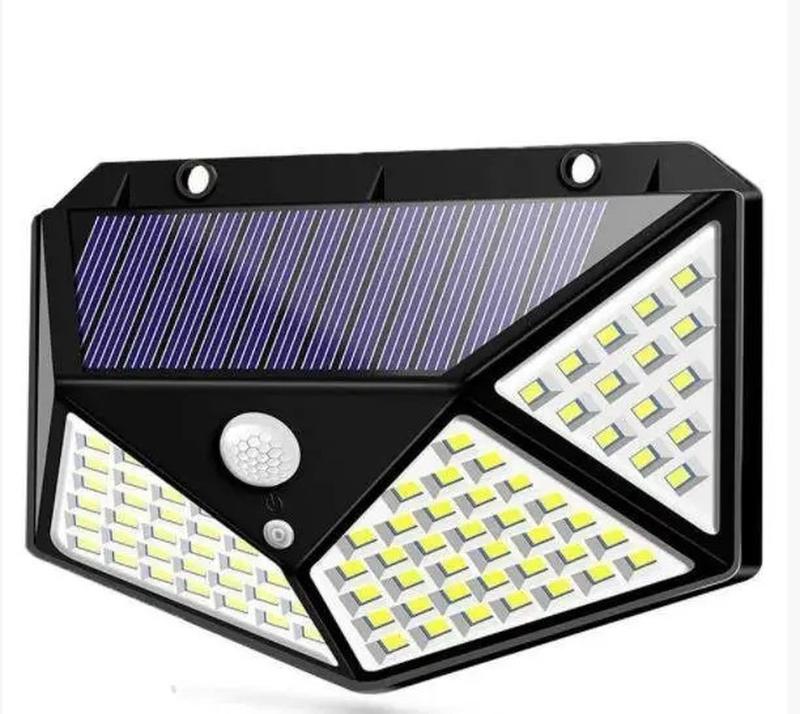 Характеристики: Мощность: 10 Вт; Яркость: 600 люмен; Батарея: 3.7 V/1800 mAh/литий-ионный аккумулятор; Расстояние срабатывания: 5 метров, угол: ≤120°; Датчик движения: есть; Количество светодиодов: 100 шт; Мощность панели солнечной панели: 5,5 V, 1W; Материал: пластик; Размер: 135х98х55 мм; Цвет: черный Комплектация: Фонарь Картонная коробка