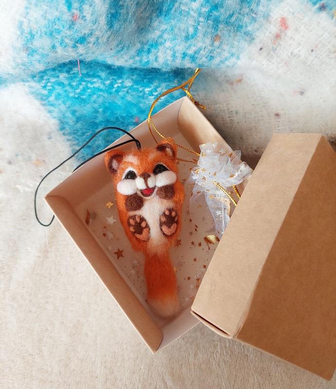 Брелок ручної роботи у вигляді щасливої лисички. Брелок може прикрасити улюблену сумочку, рюкзак або весело гойдатися на дзеркалі заднього виду в автівці. Стане приємним подарунком для себе або для близької людини. Лисеня зроблено з натуральної вовни у техніці сухе валяння. Повністю ручна робота, зроблено з душею ♥ Розмір лисички 9.8х4 см, довжина шнура-підвіса 11.5 см. Готова ідея для подарунку – лисенятко буде дбайливо запаковане у гарну коробочку. Відповім на усі Ваші запитання! Більше валяних звірят у моєму магазинчику!