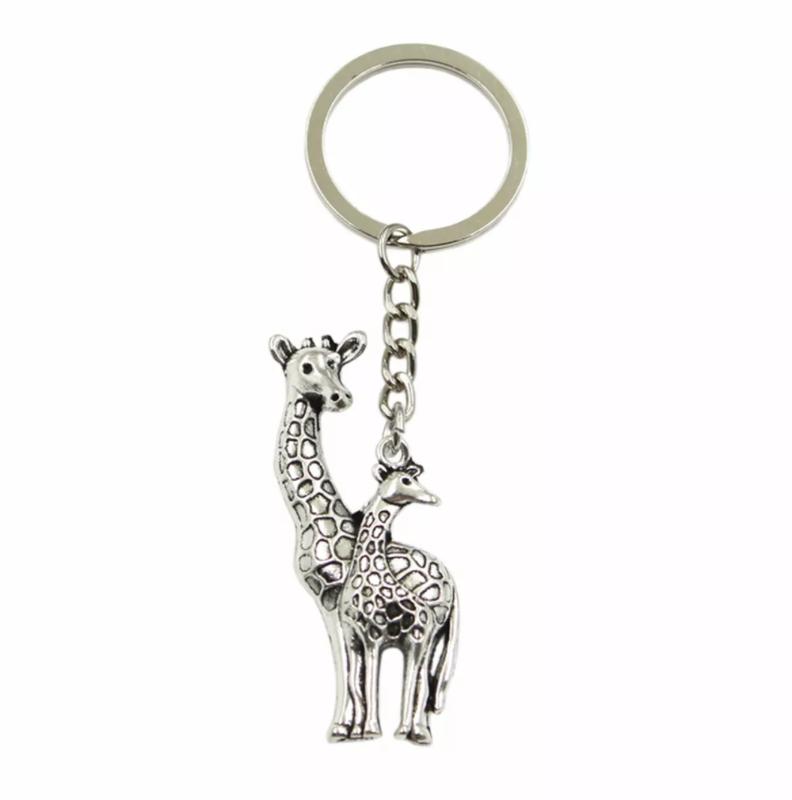 Брелок металлический для ключей, сумок, рюкзаков "жирафы / giraffe" серебристый