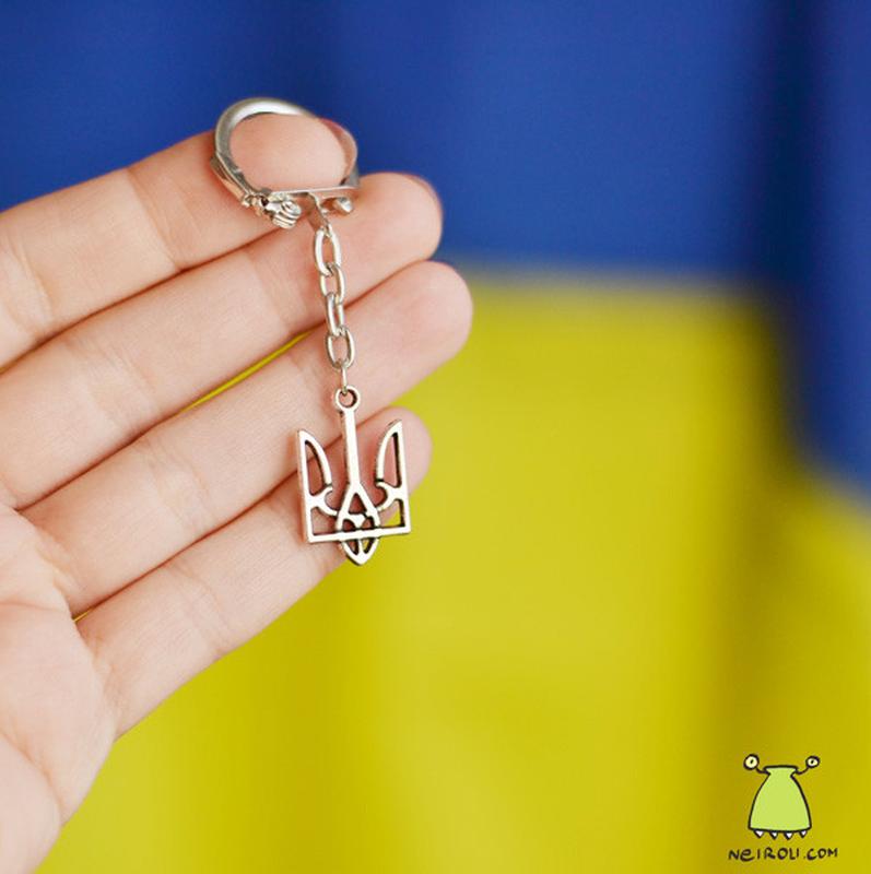 Брелок на ключі герб україни 25*15 мм. тризуб карабін. колір срібло